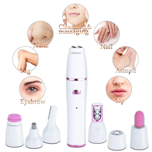 Rasoir Électrique 7 en 1 pour Femme - Épilateur, Rasoir Bikini, Coupe-Cheveux, Brosse Nettoyante, Masseur et Polisseur d'Ongles